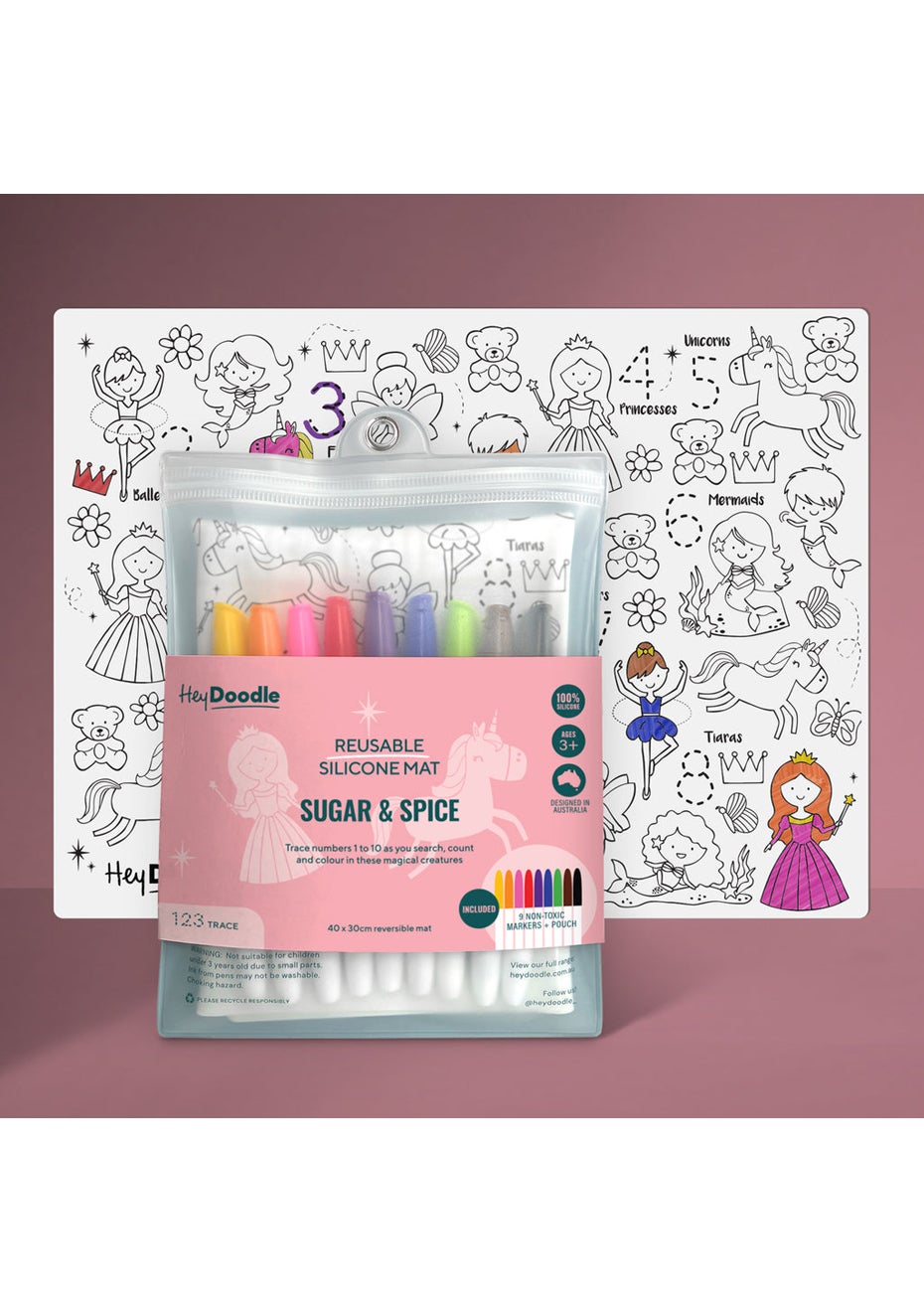 The best thing is, as with all HeyDoodle mats, they can be wiped clean and reused! Each pack comes with an A3 reusable silicone mat, nine markers for hours of colouring, and a handy carry pouch (so you don’t lose anything while on the go!). Each mat is thoughtfully designed and features an educational theme (e.g., space, letters, farm animals, numbers) so your curious kids can learn as they trace, draw, and colour!
