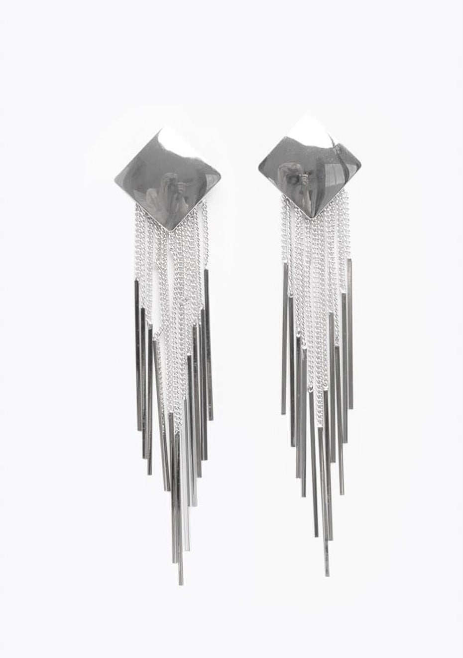 Silver plated square stud earrings with stunning drop detailing perfect for a night out