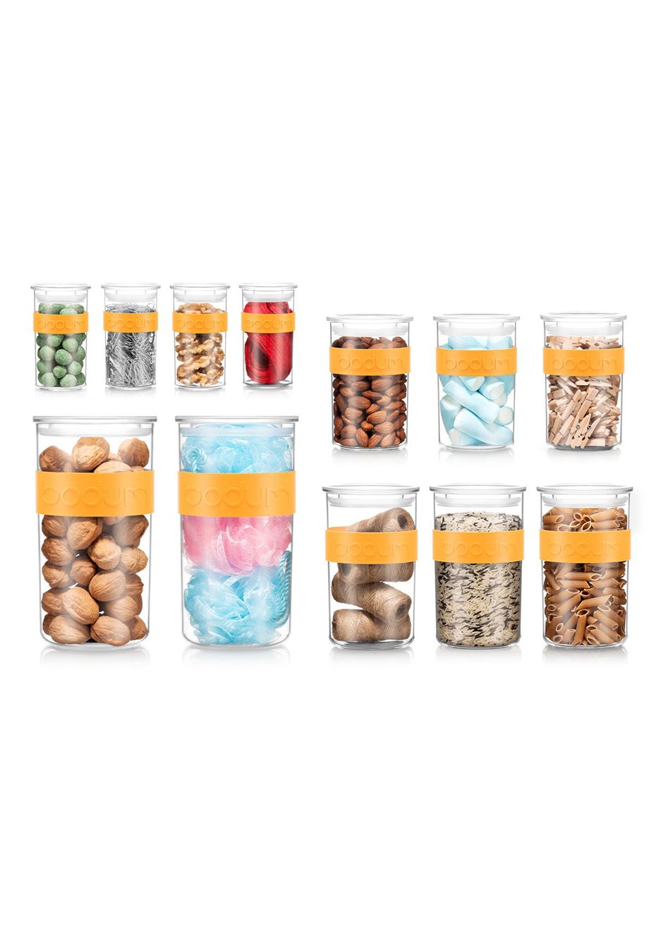 Versatile and flexible, these plastic storage jars come in a variety of sizes designed to fit different pantry staples, making them the ideal containers for cereal, pasta, flour, sugar, nuts, beans, coffee, tea and other foodstuff, and perfect for storing various liquids. Fitted with a band for comfortable grip, they complement other items in the Bodum range.