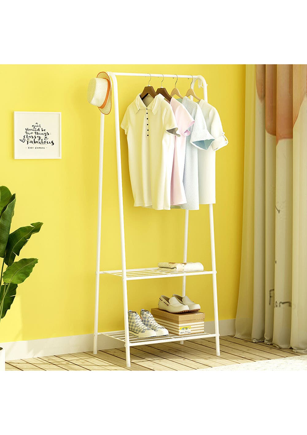 Entryway Clothes Rack Storage with 2-Tier Metal Shelf<br><br><br><br>Material: Steel <br><br>Product dimensions (LWH): 60x36x153cm<br><br>Package dimensions (LWH): 80x35x4.5cm<br><br> <br><br>Features<br><br>Made of powder-coated metal tubes and high quality metal wires ,this garment rack is durable while using.<br><br>Enough storage space to meet various demands:Totally 2-tier of shelves to store folded clothes ,accessories,quilt,storage boxes ,shoes etc.1 top rod can hang garment and coats.<br><br>Keep your stuff well-organized with smart storage solution:This garment rack is solid and easy-moving.<br><br>Easy assembly,portable and free standing design enables it more easier to move around.<br><br><br><br>Package Contents: <br><br>1 x Clothes Rack Storage