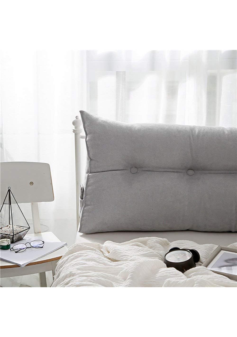 120CM Cotton Linen Filled Triangular Wedge Bed Cushion - Grey
