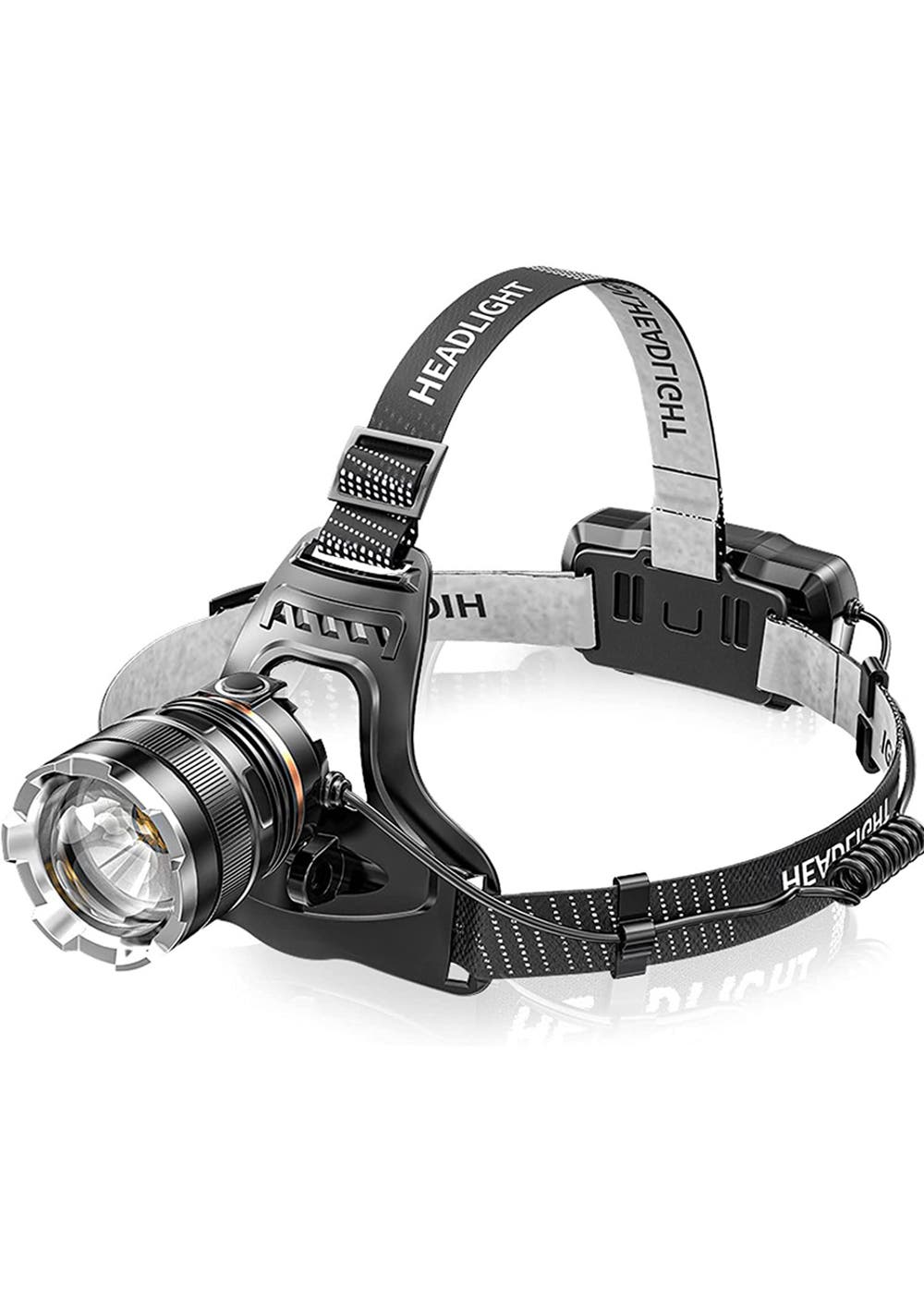 LED Rechargeable Super Bright Headlamp<br>Material: ABS Aluminium<br>Package dimensions (LWH): 12x11x10cm<br>Weight: 280g<br>About this item<br>• Super Brightness & Long Life: This headlamp uses a high-quality LED chip, providing up to 10,000 lumens of light and a range of up to 500 meters. The bulb is rated for 100,000 hours of use. Equipped with 2 X 1500mAh batteries, the headlamp can run for 8 hours at high brightness and over 35 hours at low brightness.<br>• 90° Adjustable & Five Modes: The headlamp is designed to be adjustable up to 90°, providing a full range of vision from front to back. It features five lighting modes: high, low, strobe, SOS(long-pressing), and zoom. The headlamp also has a red backlight, allowing you to adjust the lighting according to your environment.<br>• USB Charging & Power Output: The headlamp features USB charging <br>• IPX5 Waterproof & Highly Durable: With an IPX5 waterproof rating, this headlamp can withstand harsh outdoor conditions, including heavy rain, extreme cold, and high temperatures. It's ideal for outdoor activities such as night walking, running, cycling, hiking, camping, climbing, diving, fishing, and more, allowing you to fully experience the charm of nature.<br>Package Includes:<br>• 1 * Headlamp<br>• 2 * Battery<br>• 1 * USB Charging Cable<br>