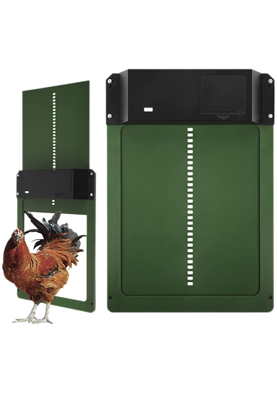 Automatic Chicken Coop Door Chicken Door Opener<br><br>Material: ABS<br>Product dimensions (LWH) : 35×24×3.7cm<br>Package dimensions (LWH): 36x25.5x5cm<br>Weight: 485g<br>Feature<br>Automatic chicken house door. Built-in motor system to make the performance more stable and reliable; the improved optical sensor has a higher sensitivity; with more advanced PC materials, it is more durable. At the same time, it can work normally in rain and high temperatures.<br>The latest optical sensor technology: the latest optical sensor technology is adopted. The chicken house door opens automatically at sunrise and closes when it gets dark. The performance is very reliable. The whole process is automatically opened and closed without manual intervention.<br>Waterproof and durable: the automatic chicken house door is made of ABS material, safe and reliable, waterproof IPX4, heat resistant and cold resistant. As the battery is sealed, it is very suitable for indoor and outdoor use.<br>Easy to use and energy saving: only 3 1.5 V ordinary batteries (excluded) be used, and save energy; there is no need for complex wiring and it is easy to use. <br>Wide range of applications: the size of the chicken door is 35 × 24 cm, which can adapt to almost any chicken size, and ducks can easily pass through. <br><br>Package Include<br> 1 x Chicken Coop Automatic Door with Light Sensor<br> 4 x screws