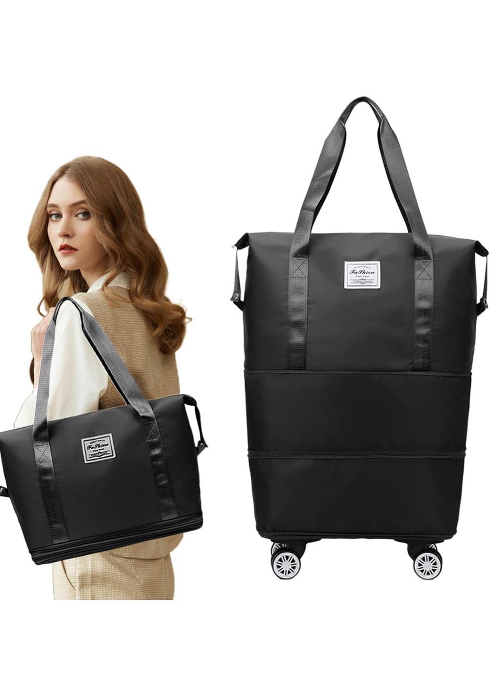 Expandable foldable duffel bag suitcase with Removable Wheels M -Black