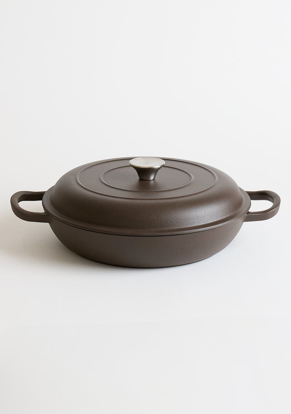 George Collective - Cast Iron Shallow Casserole 30cm - Matte Cocoa/Silver LidCLEARANCE