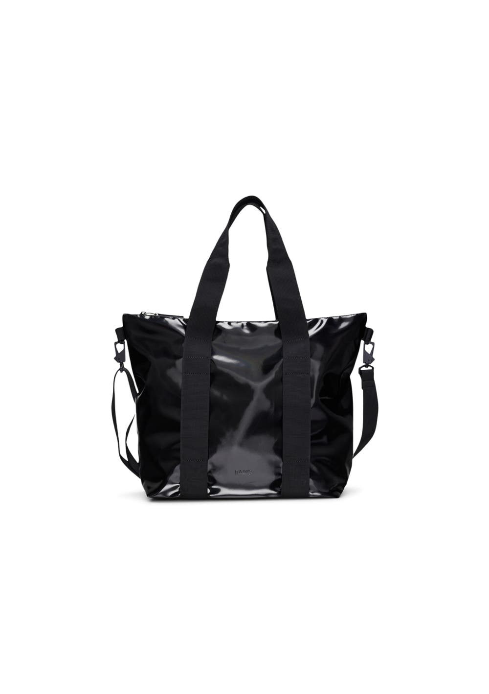 Tote Bag Mini is a waterproof tote perfect for shopping, commutes or the office. Characterized by an elevated utility-look and functional details. The full-length coated zip reveals a spacious main compartment for everyday essentials. Designed to meet your carry-needs, Tote Bag Mini offers various carrying options through its detachable shoulder strap and long hand/shoulder handles. Carry handles feature attachment rings for small items like keys. Tote Bag Mini is cut from Rains' signature PU fabric, engineered for carrying strength, durability and a smooth feel.