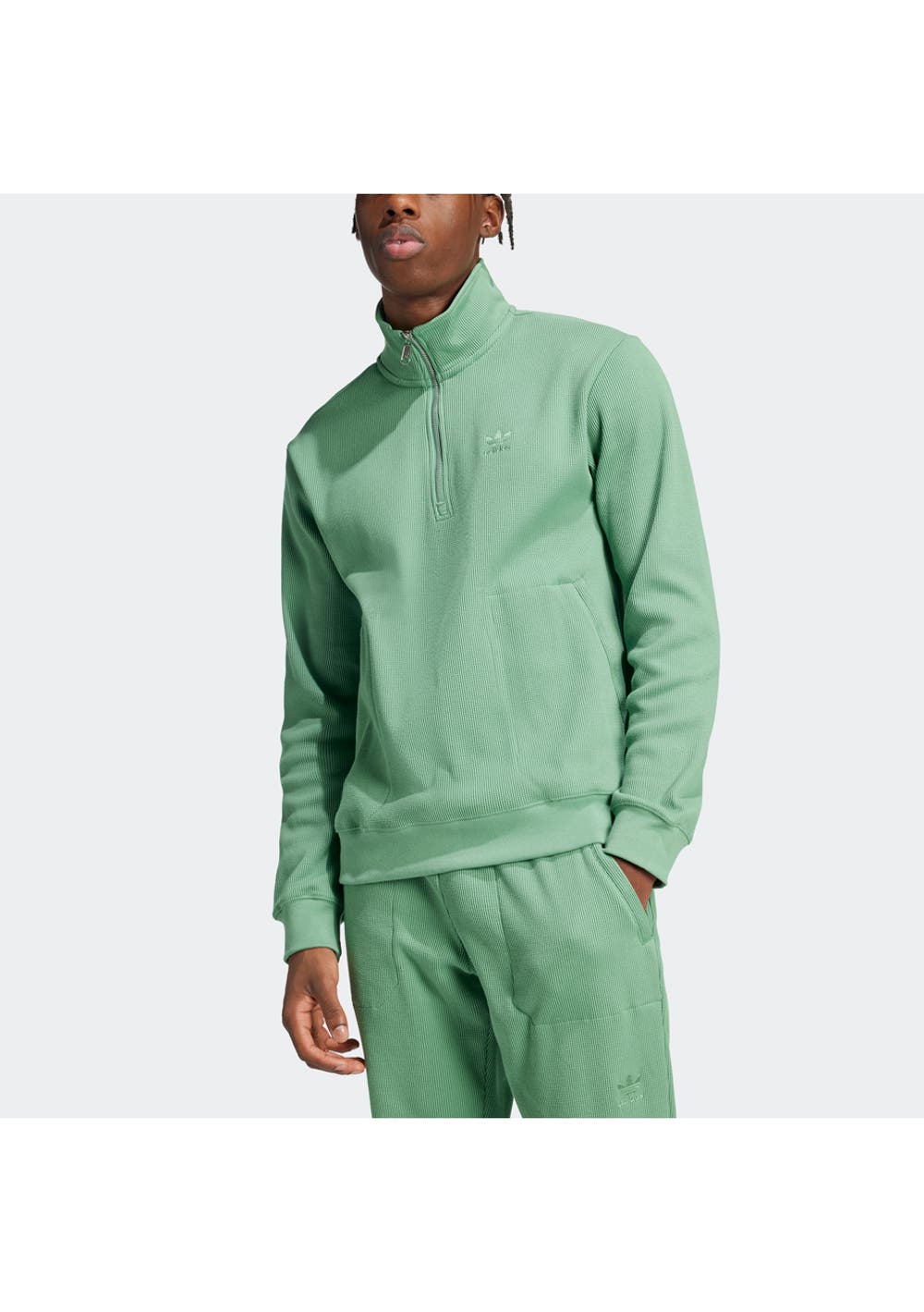 adidas Originals - Mens Trefoil Essentials Waffle 1/2 Zip Sweatshirt - Preloved Green