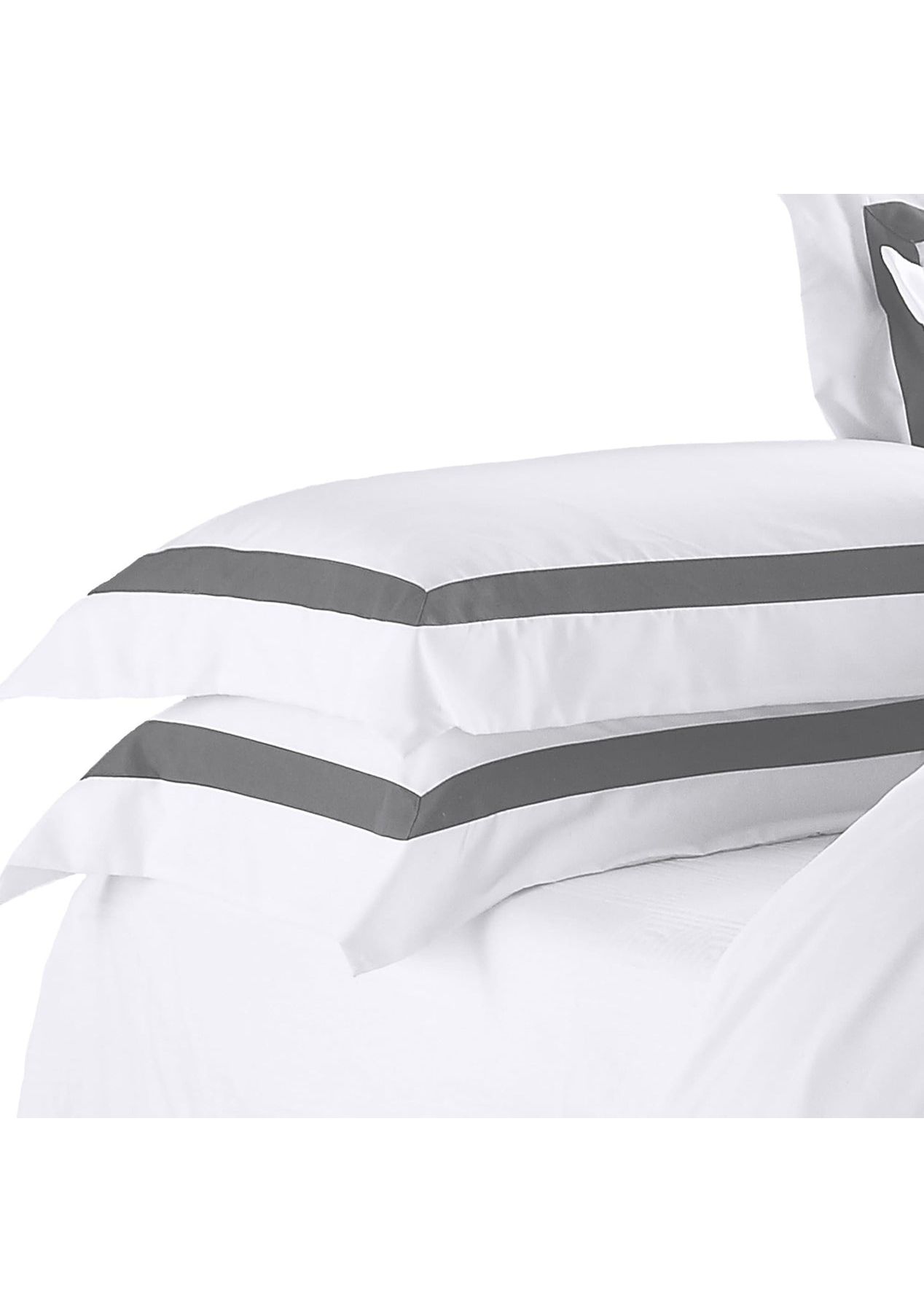 Ivory & Deene - Ava Collection White Standard Pillowcase Set - Charcoal Trim