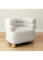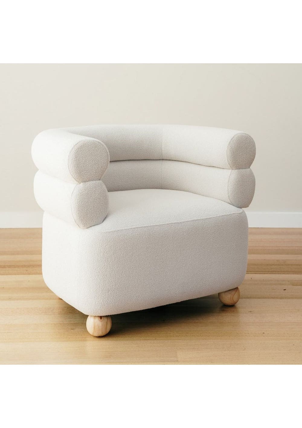 Includes: One Logan Armchair complete screw set ready to assemble. The minimalist design and relaxing texture complement any decor, enhancing your homes elegance and warmth. All sizes are approximate. This modern seat, featuring on-trend boucle fabric and wooden "ball" legs adds sophistication and warmth to any room. Perfect for your living room or reading nook, its chic design and luxurious feel make it a lifestyle choice for those who appreciate elegance and style. Features: Colour White Size Height: 69cmWidth: 83cmDepth: 66cmSeat Width: 52cmSeat Depth: 50cm Material Boucle Fabric and Wooden Legs Product Weight 16kg Packaged Weight 18.8kg