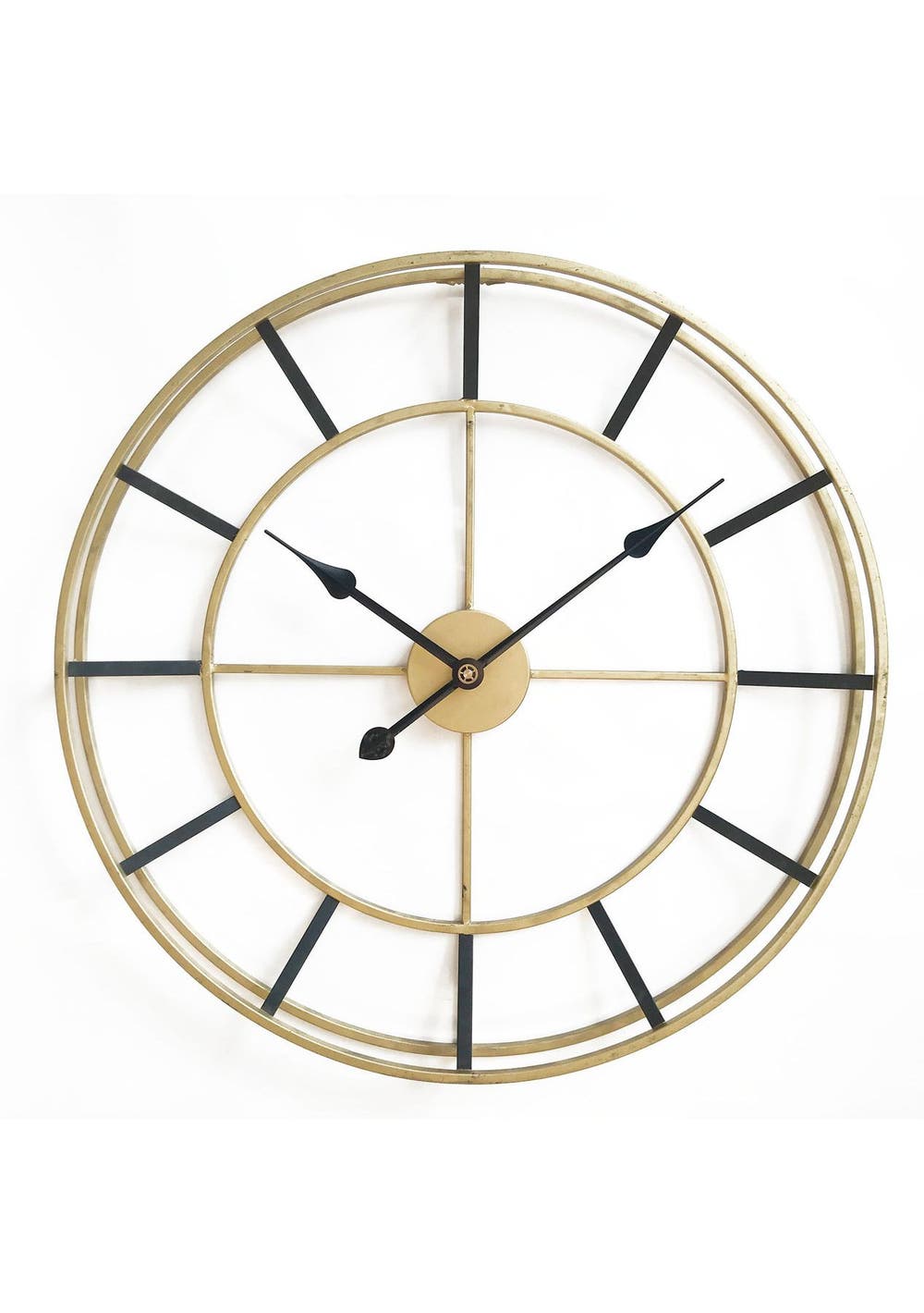 Enjoy the elegance of our new Oxford clock that easily doubles as a stunning decor to enhance any living space. It features floating invisible numbers on double metal frame and stands out with its striking distressed gold and black finish. The 60cm size makes it impossible to miss its elegance. Features: Brand Ivory & Deene Style Oxford Colour Distressed Gold/Black Movement Step (Ticking) Size 60cm Diameter Mechanism Battery 1 x AA Type Wall Notes - Battery is not included- Suitable for domestic or commercial applications - Approximate weight of 2.0 kg