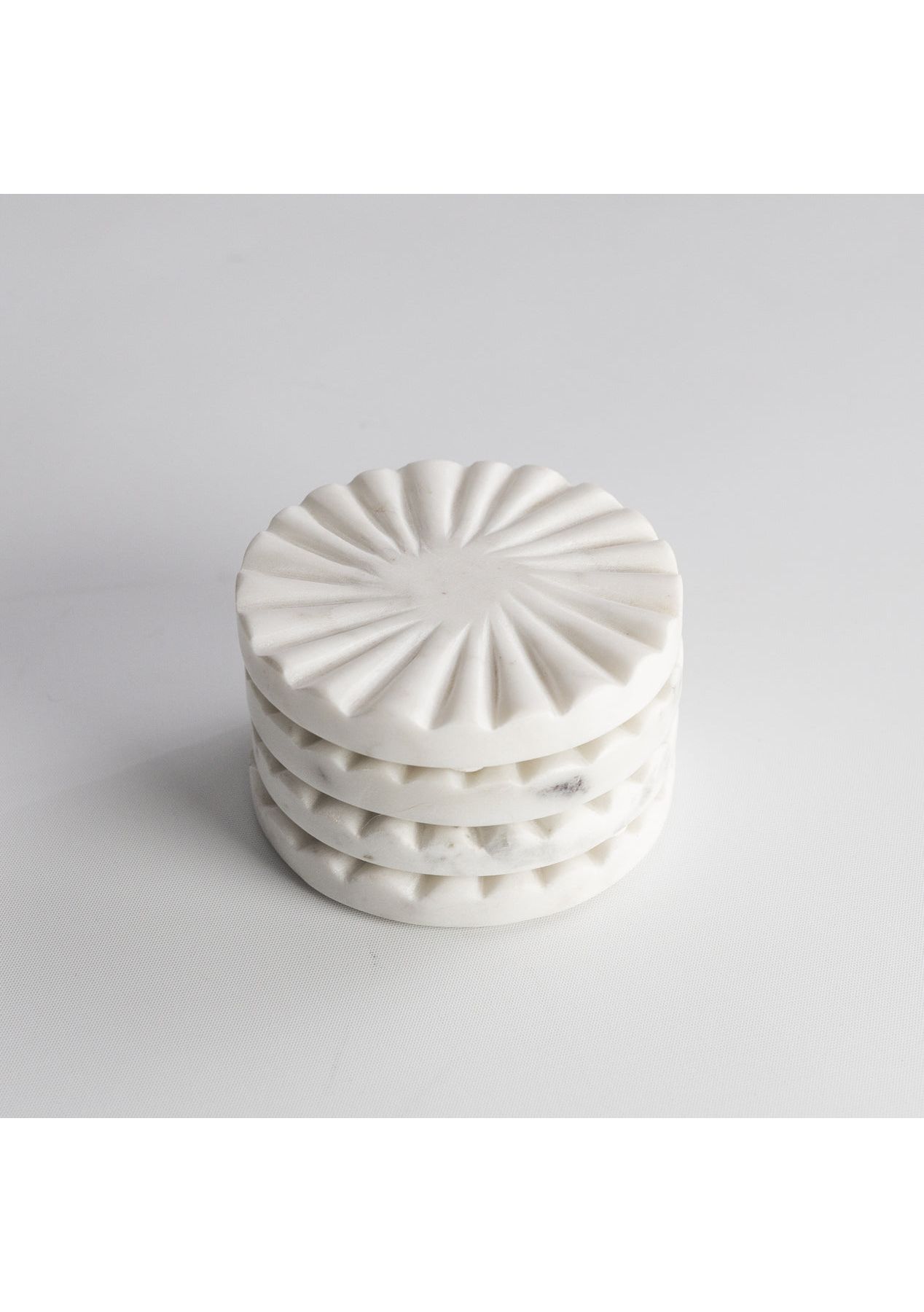 Elevate everyday moments with our set of 4 scalloped marble coasters, where timeless material meets playful form. Carved from natural marble, each piece is one-of-a-kind featuring organic veining and a beautifully scalloped edge that adds softness to the stone’s natural strength. These designer drink coasters aren’t just functional; they’re mini sculptures for your table, dining setting, or bedside. Whether you're styling a modern coastal home, an airbnb, a contemporary classic interior, or curating a layered, textural look, these elegant marble coasters offer the perfect blend of utility and understated charm. Features: Colour White Material Marble Size 10cmx10cm Product Weight 1.2kg Packaged Weight 1.3kg