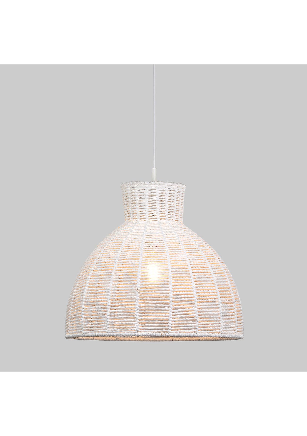 Includes: One pendant light complete with ceiling canopy, adjustable cord and screw set. The classy Kellie Pendant is also available in a stunning Natural Rope finish. Suitable for indoor domestic or commercial applications. All sizes and weights are approximate. Please inspect all lighting fixtures for any cosmetic imperfections before installing and disposing of the packaging. Ivory & Deene is not responsible for physical damage after the fixture is installed. Made to SAA Standards. Our Kellie pendant lights feature an industrial dome design crafted with traditional weaving techniques, bringing warmth, texture, and a stunning vibe to any room. Perfect for kitchens, bedrooms, dining, or living areas, these lights look beautiful whether on or off and complement a variety of styles, from bohemian and coastal to mid-century modern, Scandinavian, rustic, and farmhouse. Ideal for beach houses, vacation rentals, Airbnbs, tropical retreats, entertainment clubs, themed hotels, resorts, and beachside shacks, the Kellie pendant lights add a relaxed, stylish ambiance that enhances both domestic and commercial spaces. The possibilities are endless! Features: Style Scandinavian / Bohemian / Coastal / Classic Modern Colour White Shade Size Height: 35cm Diameter: 40cm Ceiling Canopy Height: 2.5cmDiameter: 12cm Globe Details 1x E26/E27 Edison Screw (not included) Adjustable Cord Length 120cm Material Metal and Rope Wattage 60W IP Rating IP20 Installation To be installed by a qualified electrician Product Weight 1.2kg Packaged Weight 2.6kg