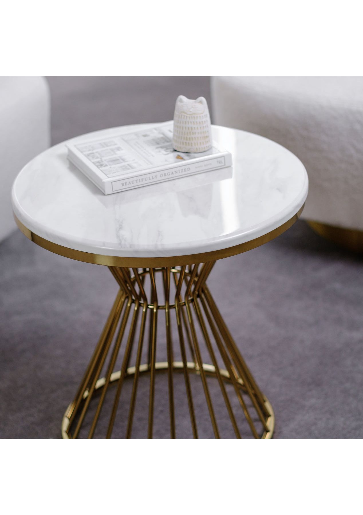 Ivory & Deene - Harper Side Table - White Marble and Gold