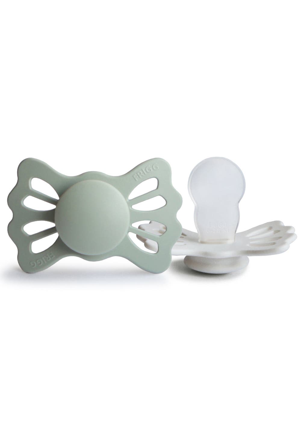 Frigg's Lucky is a symmetrical pacifier inspired by the four-leaf clover. The shield has wavy edges that are shaped as the leaves of the four-leaf clover, and these leaves are reflected on the shield as well, functioning as airholes. It also features a slightly flattened and teardrop-shaped nipple. The symmetrical pacifier always rests correctly in your baby’s mouth, regardless of whether it is facing up or down. It is designed with a flatter neck to reduce the pressure on palate, gums, and also reduce the risk of crooked teeth and a crooked bite. The orthodontic design is perfect for supporting the proper development of baby’s teeth, jaw, and palate.