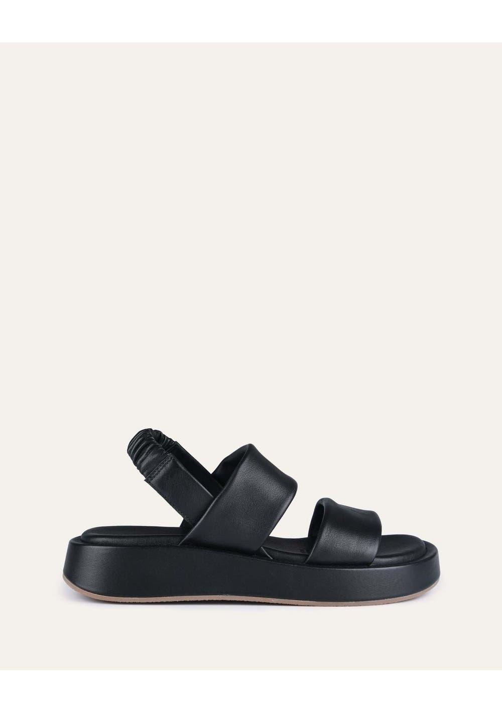 DANA is everything a casual summer sandal should be. A soft tubular double banded strap, elastic leather covered slingback stay and cushioned flatform footbed makes DANA equally comfortable and cool. The soft genuine leather upper and lining makes them ideal for all-day wear all season long. Specifications - Flatform sandal- Genuine leather upper and lining- Elastic leather covered slingback stay- Soft tubular double banded sandal- Softly rounded toe shape- Two bar sandal- Flat-form footbed Heel height: 4cm Upper: LeatherLining: LeatherSole: Non-leather