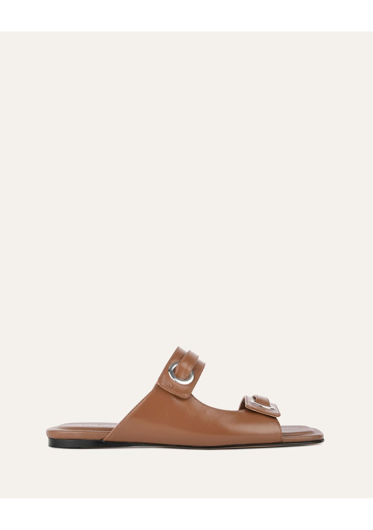 From the beach to long lunches, QUILL will be your new favourite flat sandal this season. It features a softly rounded toe shape, sueded resin sole and round gold eyelets detailing. Style yours with light fabrics like linen, cotton or denim. Specifications - Flat sandal - Softly squared toe shape - Sueded resin sole - Round gold eyelets - Polished cow leather - Flat sandal with two straps Heel height: 0.8 cmUpper: LeatherLining: LeatherSole: Non-leather sole