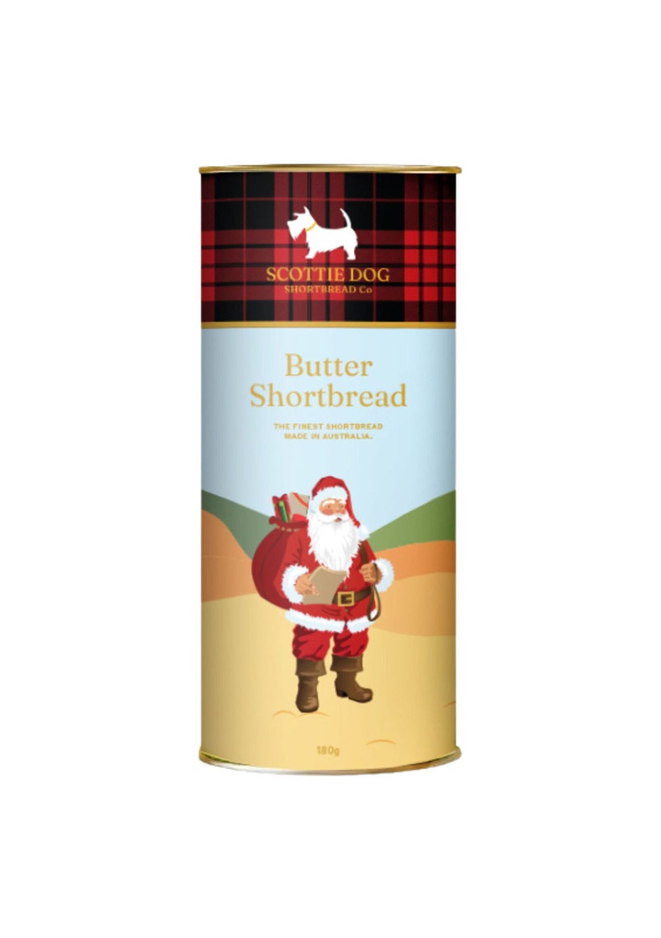 Buttery Australian made shortbread in a fun Christmas themed tube from the Scottie Dog Shortbread Co. Perfect for Christmas Gifting.