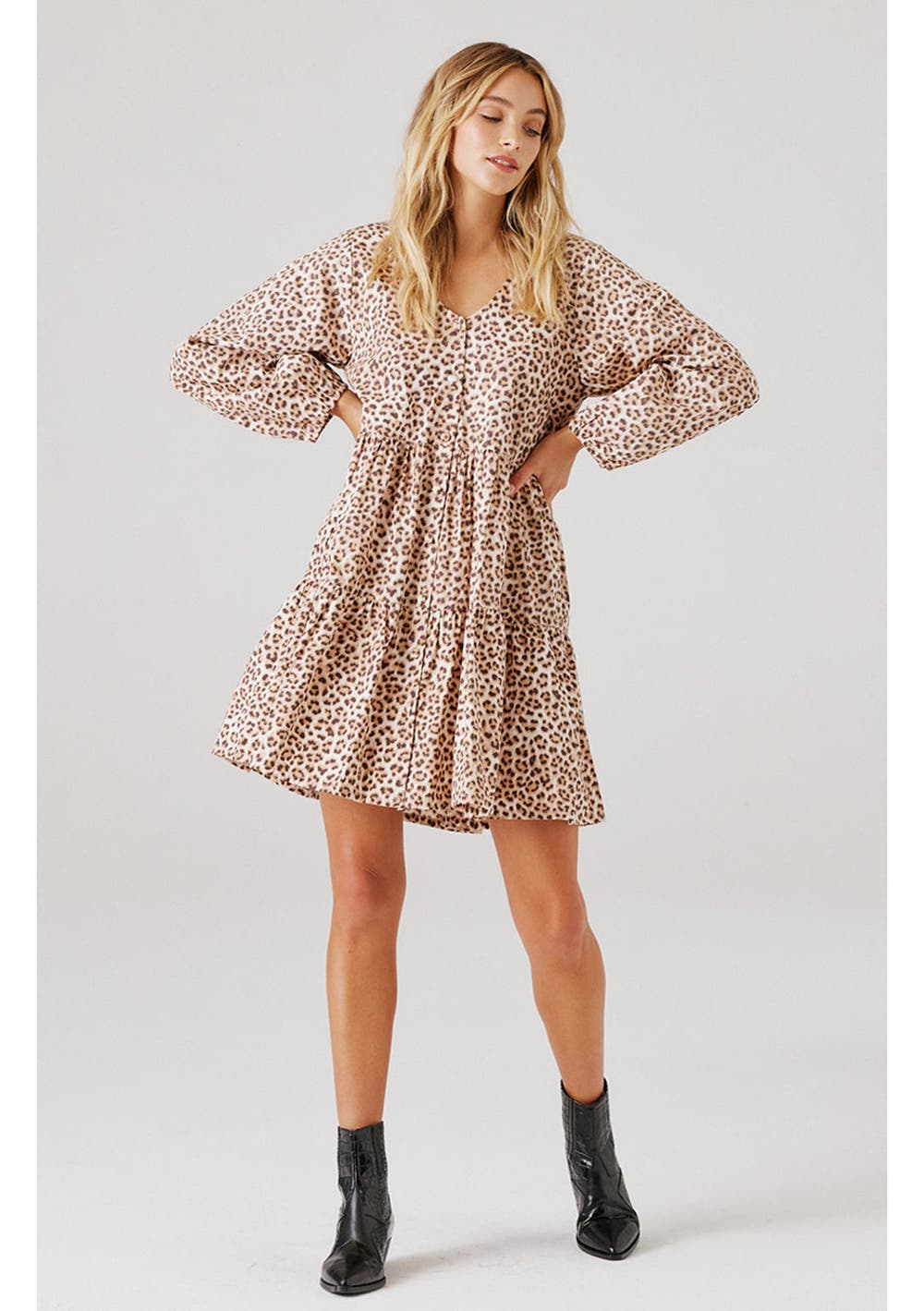 Cartel & Willow - Short Leopard Long Sleeve Dress - Leopard