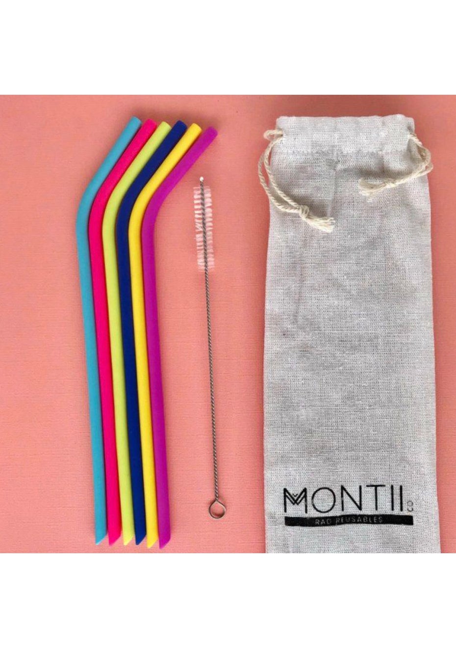 MontiiCo - Reusable Silicone Straws (6 Pack) - Rainbow