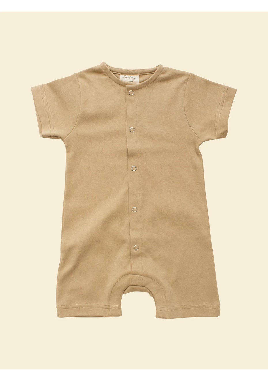 Our summer romper is the perfect playsuit for hot summer days, whether at home or out & about. Made from our soft organic cotton fabric, it has an airy and relaxed fit for comfort.  It has snap domes down the front to make dressing easy and now also,  snap dome closure between the legs to simplify nappy changes.A little note: Our honeycomb print is intentionally imperfectly printed.