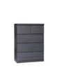 PR610 Your bidding on a brand new Tiko Tallboy 800 - Simple handy tallboy- Comes with 3 large drawers and two small drawers on top- Good practical unit with metal runners for your sliding your drawers out- Sturdy frame structure Specification- Length 800 Depth 400 Height 1110mm - Gross Weight 42 kgs- Packaging 2 boxes- Hacienda Black Colour. Note: Assembly required. During the assembly process it is normal to see a small amount of chipping internally. This in no way affects the integrity of the fully assembled product. Images are for display purposes. Colour may differ slightly depending upon monitor resolution. Please click here for the assembly instructions It comes in 2 boxes.Packaging Dimensions: BoxA: 115x44.5x11.5CmBoxB: 84.9x50.2x11.8Cm