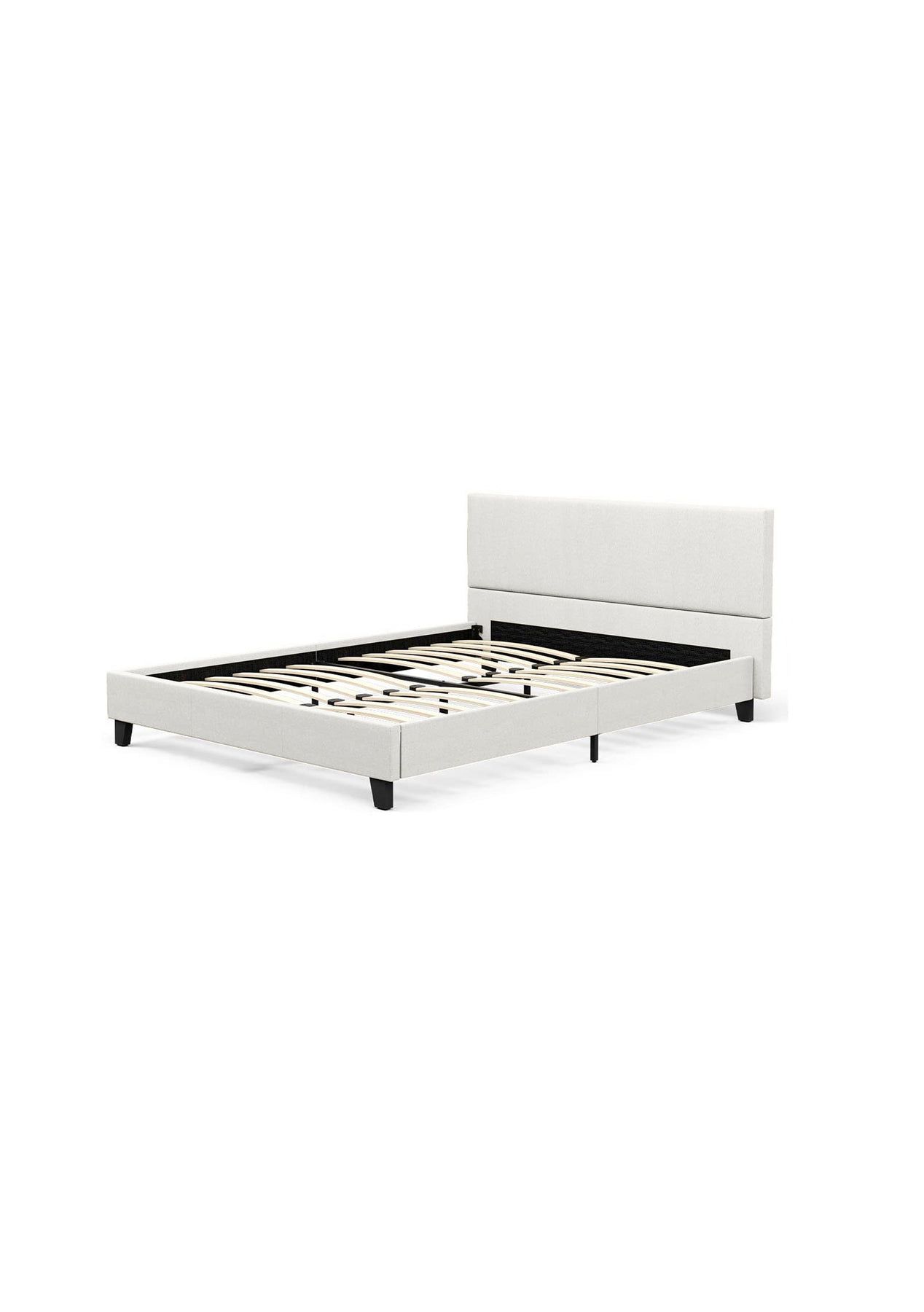 PR65751 - Banff Linen Bed Frame Double BeigeDescription:The Banff Linen Bedframe with headboard features a metal frame and wooden slats that provide strong and sturdy support for your memory foam or spring mattress, it is the perfect solution to get a foundation that will fit in limited spaces. It features a sturdy wood slat construction with metal side rails and a center support leg for more stability and durability. This platform bed with headboard provides you a stylish and strong support for your mattress, and with high and thick headboard will provide you with an excellent comfortable feeling while leaning on. Do not hesitate, choose us and take it to your home!FeaturesStylish modern designLinen Upholstered TuftedMetal frameWood slatsPlastic legsExtra metal support barsFit in 137x190cm double-size mattressAssemble easilySpecificationMaterial: metal + wood + linenOverall Size: 204.5x151x89 cmColor: Beige Package Dimension: 1581mm x 511mm x 173mm
