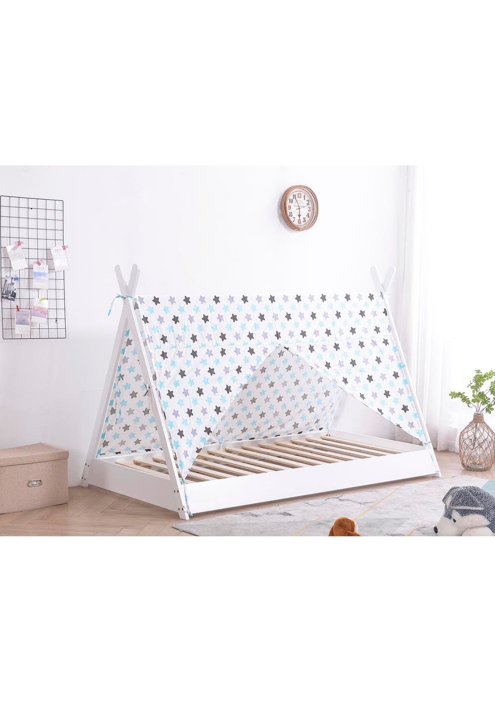 PR6298 - Molly House Bed with Canopy White+StarOur Molly House Bed will bring your child great hours of adventure as a cuddly corner for a cozy retreat or a creative oasis. Innovative and funny design makes it a unique decorative in any rooms. The robust and safe construction built of pine wood and the floor height of the sleeping surface without the risk of falling make the bed particularly suitable for children. Canopy with timeless star and dinosaur design surely will be children’s favor. FeaturePine Wood FrameStable and Sturdy ConstructionPlywood SlatsInnovative DesignSmooth Finish EdgesSpecificationMaterial: Pine WoodColor: WhiteCanopy: StarDimension: Fit in 190*91cm MattressAssembly Required. ***Please note that the listing is only for the bed frame only***