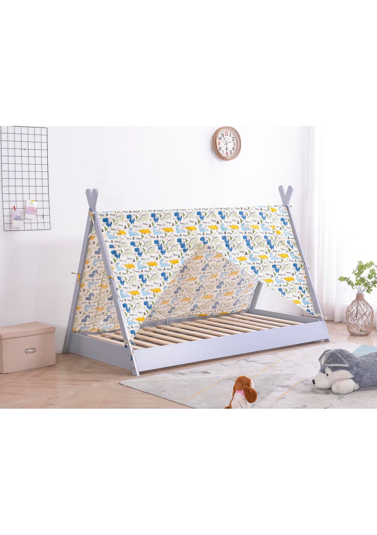 PR6299 - Molly House Bed with Canopy Grey+DinosaurOur Molly House Bed will bring your child great hours of adventure as a cuddly corner for a cozy retreat or a creative oasis. Innovative and funny design makes it a unique decorative in any rooms. The robust and safe construction built of pine wood and the floor height of the sleeping surface without the risk of falling make the bed particularly suitable for children. Canopy with timeless star and dinosaur design surely will be children’s favor. FeaturePine Wood FrameStable and Sturdy ConstructionPlywood SlatsInnovative DesignSmooth Finish EdgesSpecificationMaterial: Pine WoodColor: GreyCanopy: DinosaurDimension: Fit in 190*91cm MattressAssembly Required. ***Please note that the listing is only for the bed frame only***