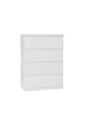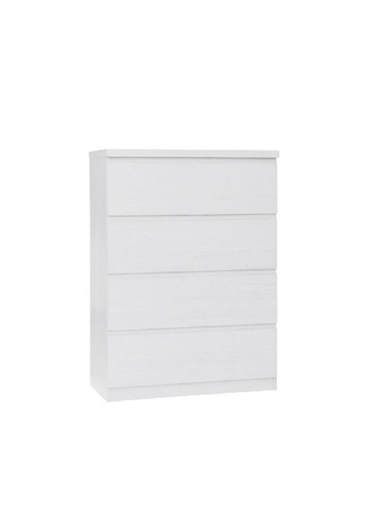 PR759 (1) Tiko tallboy 4 drawers - Simple handy tallboy- Comes with 4 large drawers.- Good practical unit with metal runners for your sliding your drawers out- Sturdy frame structure Specification- Length 800 Depth 400 Height 1110mm - Gross Weight 42 kgs- Packaging 2 boxes- WHITE COLOR. Note: Assembly required. During the assembly process it is normal to see a small amount of chipping internally. This in no way affects the integrity of the fully assembled product. Images are for display purposes. Colour may differ slightly depending upon monitor resolution. It comes in 2 boxes.Packaging Dimensions: BoxA: 113x42.5x7.1CMBoxB: 90x52x16.5CM