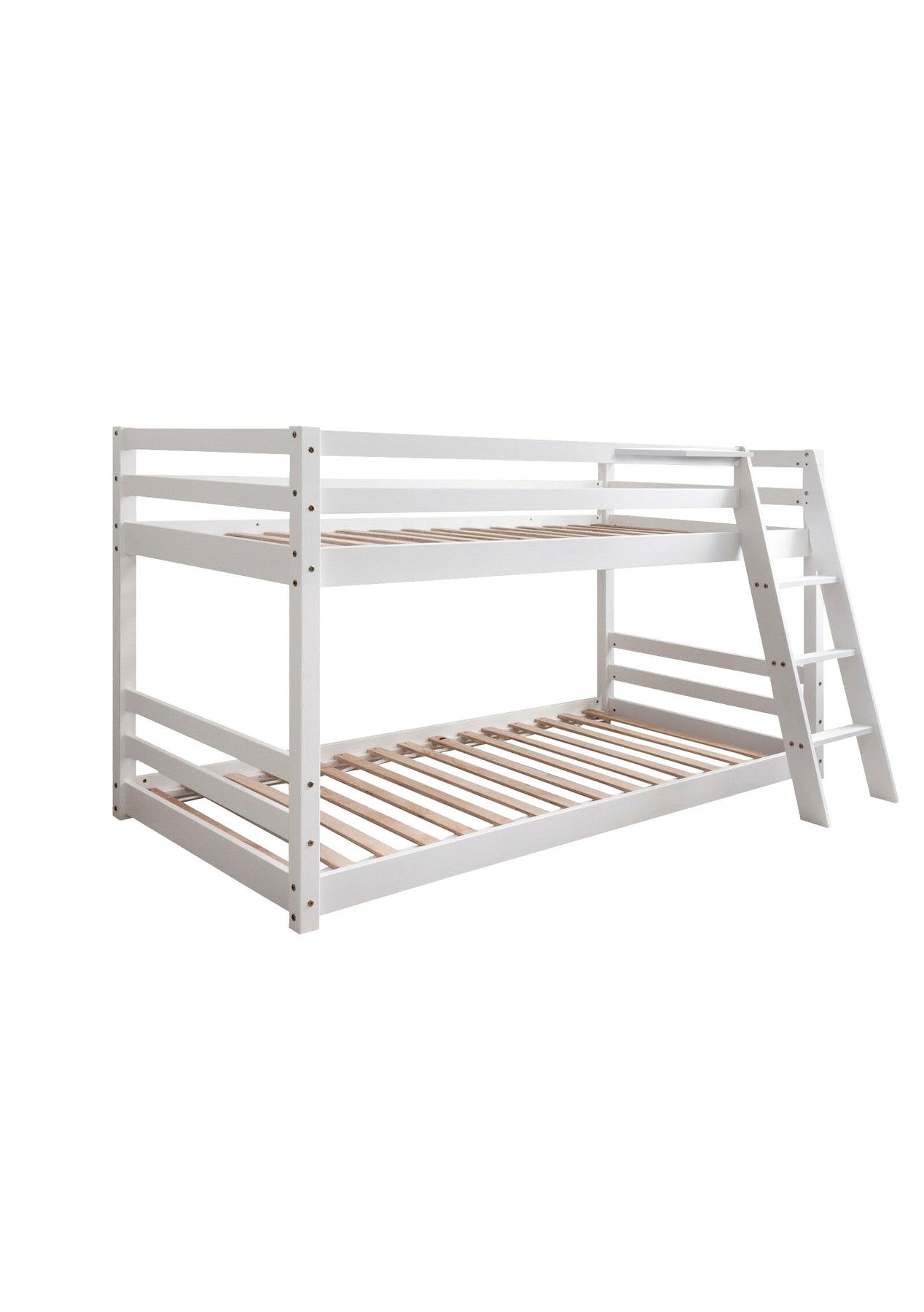 Please note that this exact mattress size may not be on display; However, a different size of the same model may be available for you to try. PR6803 PR6665430-Polli Mid-Sleeper Bunk Bed WhiteWith simple style and modern design, Polli Mid-Sleeper Bunk Bed is suitable for any home or living area. Finished in pine wood, it is strong to support large capacity. Size of two beds is the same and there is a guardrail in the upper one for safety. Bring home yours today and watch how lovely your room will be!*Safety Advice: DO NOT fit mattresses greater than 20cm in thickness (including bed covers). Maximum weight capacity for top bunk is 65kg. DO NOT EXCEED. WARNING: TOP BUNKS AND ELEVATED BEDS ARE DANGEROUS AND ARE NOT RECOMMENDED FOR CHILDREN UNDER THE AGE OF 9.FeatureMaterial PinewoodInnovative design and elegant linesGood finishFit in mattress 1900*910mmColor: whiteOverall size: 114H*101W*202LcmAssembly required.Bonnell Mattress:10cm thickness Mattress, ideal for light bed frames and shallow fitted sheetsGood quality Bonnell springs High-density foam Soft quilting layer Hypo-allergenic MaterialMedium firmness. (Note that the firmness rating may vary on different people's standard)Measurement Single: 91(W) x 190(L) x 10(H) cmIt comes in 3 boxes.Packaging Dimensions: BoxA: 200x22x16CMBox B: 93.5x19.5x20CMmattress Packaging Dimensions: 96x26x26CM