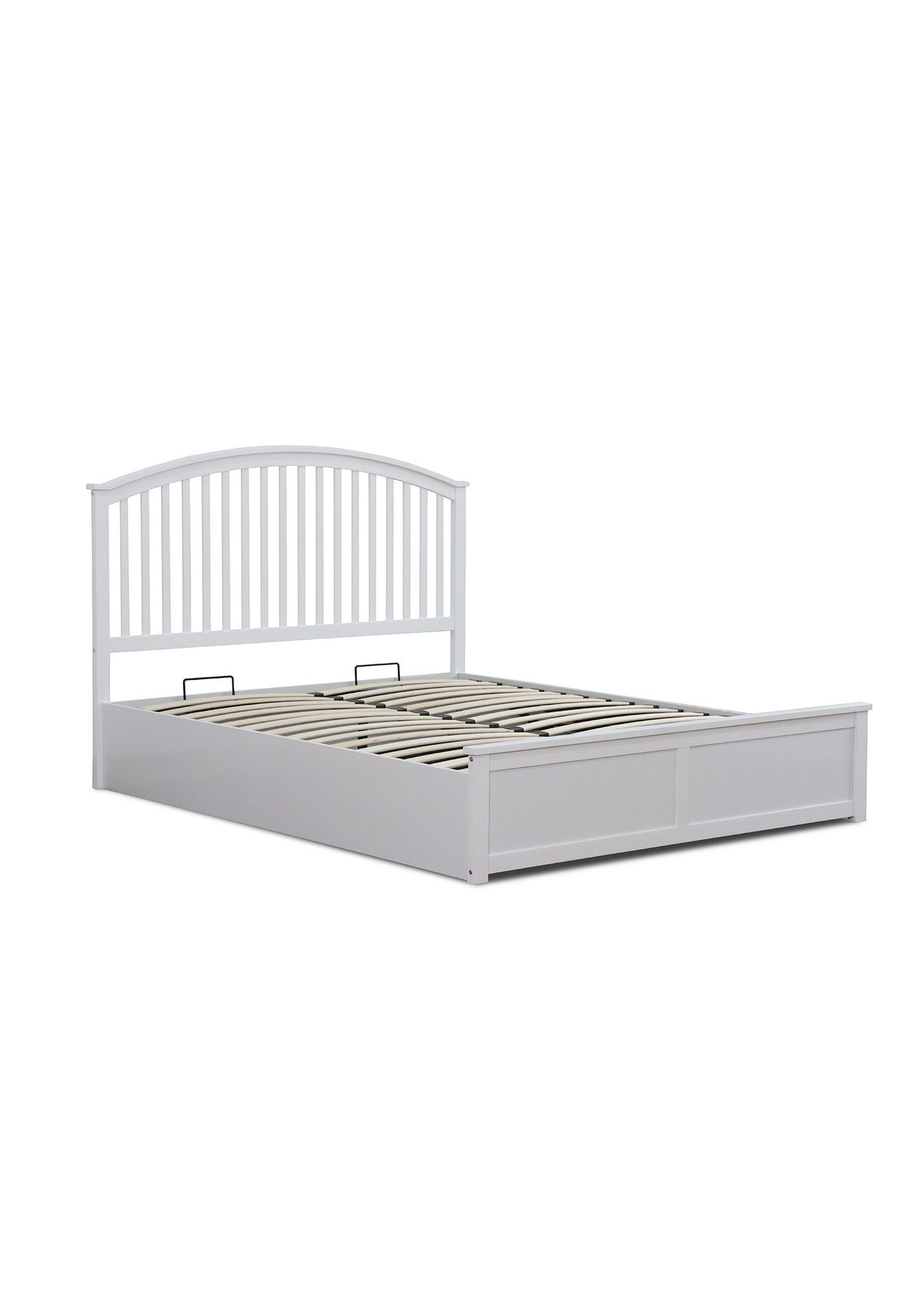 PR65578 - Harrogate Wooden Storage Bed Frame Queen White Description:Discover the elegance and utility of the Harrogate Wooden Storage Bed – a sophisticated piece that seamlessly integrates style and functionality into your bedroom space. This bed is designed to complement any dcor while offering a practical storage solution.Constructed from premium materials, this bed ensures lasting durability and support for a restful night's sleep. Crafted with meticulous attention to detail, the storage bed features a chic silhouette that adds a touch of refinement to your room. Its innovative design incorporates a hidden storage compartment beneath the mattress, effortlessly accessible with a hydraulic mechanism. Say goodbye to cluttered spaces as you effortlessly tuck away extra bedding, pillows, or blankets, keeping your room organized and serene.FeaturesSleek and modern designSturdy solid hardwood constructionSturdy slatted baseStorage spacePromotes a comfortable sleep experienceFit in standard NZ queen-size mattressSpecificationsMaterial: wood+MDF+plywoodOverall dimension: 213.1x162.8x114.8cmColor: white