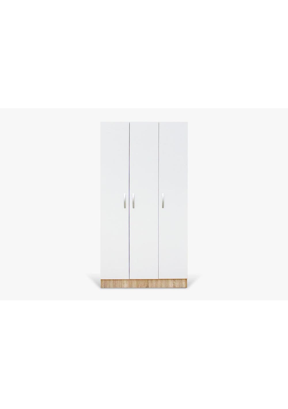 Product code: PR6401 There are no fancy words for it. Simple and clean are good enough for our new range Escort wardrobe. With the classic color of natural and white, it easily matches any dcor of your room. Well-organized design inner and spacious storage provider more space for your need. It is complemented by 3 white doors that open to reveal 2 compartments; a full drop hanging area with a shelf above the hanging rail and a single width column of 5 tiers creating 5 spacious storage areas.Features:Product Size: W91*D41.8*H180cmMaterial: particleboardColor: Natural wood and whiteSmooth curve Metal handle. With garment rack inside and 5-tier organizer. It comes in 2 boxes.Packaging Dimensions: BoxA: 184.9x45x15.5CMBoxB: 92.4x45x11.2CM