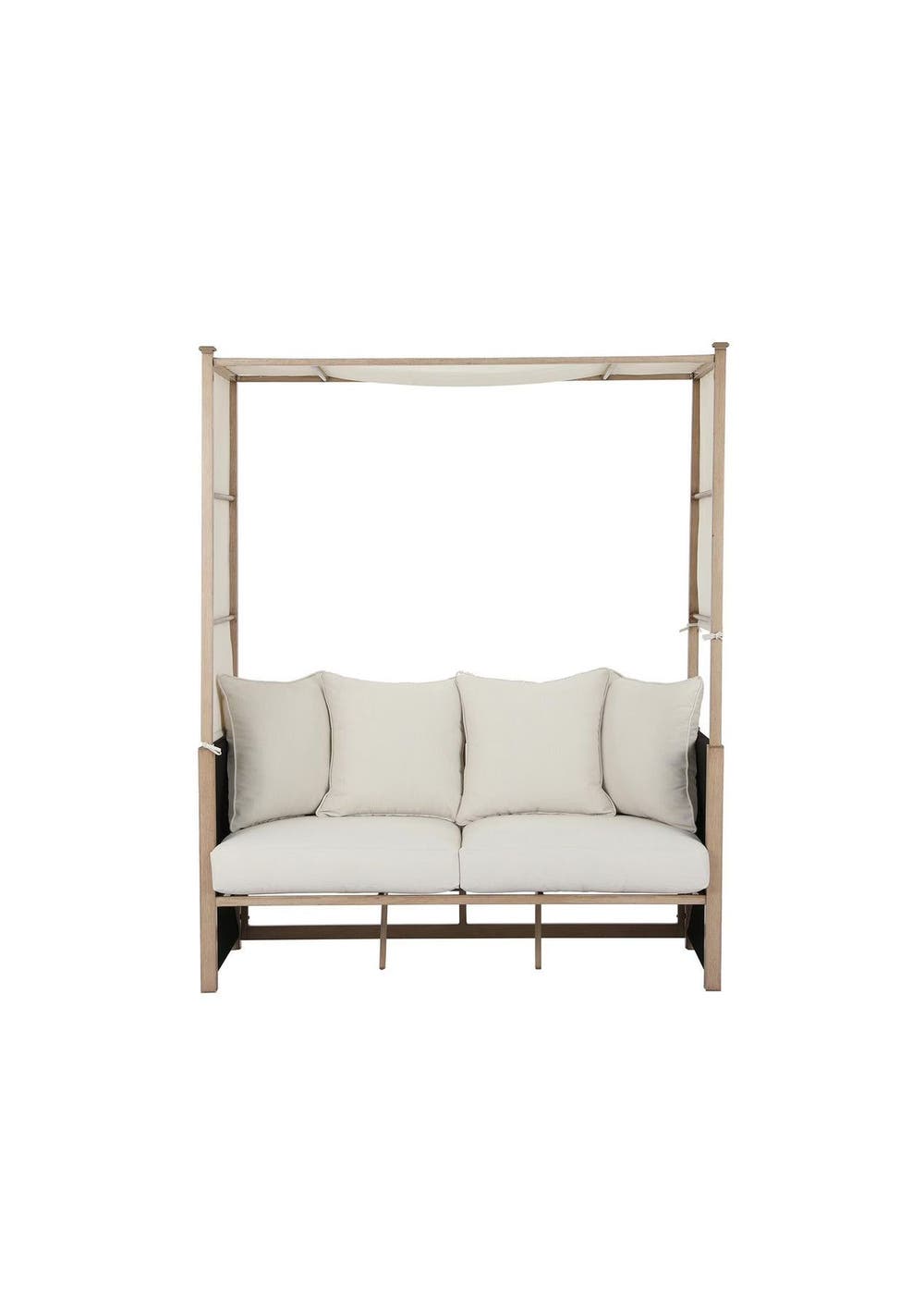 PR65876 Steel Daybed A069 For ultimate relaxation on your patio, deck, poolside, or anywhere else, choose our daybed. Crafted from heavy-duty, rust-resistant steel with a powder-coated finish, this daybed is both stylish and built to last. It also features fade-resistant solution dyed polyester cushions for long lasting comfort and durability. This daybed offers ample space for lounging. Upgrade your outdoor experience with the daybed built for ideal relaxation.FeaturesStylish and comfortablePowder-coated steel constructionRemovable canopyThick padded cushionsRemovable and washable coversEasy to cleanAssemble requiredSpecificationDimension: 74.1x167.7x207.7cmFrame colour: woodCushion colour: beige