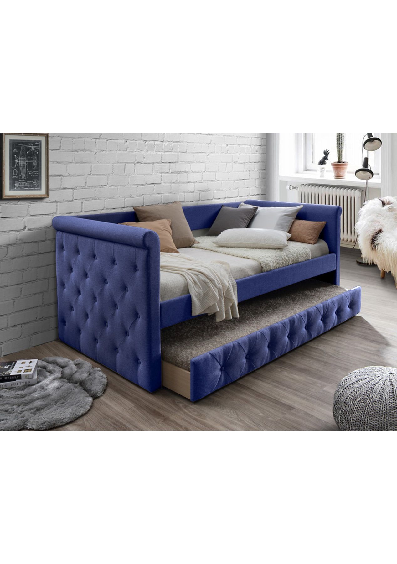 PR2997Classic bedroom design comes in a space-saving package with the Daybed.The Lucetta Daybed adds extra sleep space and style all at once.This Lucetta Day Bed is designed with the modern traditional home in mind; Pull-out trundle bed fits a twin-size mattress, offering addition sleeping space; Equally at home as a seating piece or a guest bed, a multi-function roll out trundle bed stows away neatly beneath the daybed;Designed to use as a bed or a cozy relaxation nook, it features a trundle that provides the extra space that you need for overnight guests. Perfect for studio apartments, a spare bedroom that acts as both an office and guest room, and kids' rooms, daybeds are versatile additions to any abode; Includes:*Sofa/daybed*Sides*Trundle*Wood/foam/linen*100% foam filling*Spot clean onlyFull daybed measures: 2170*1005*950mm overall; Full trundle measures: 1932*965*260mm overallColor:BlueBedding, mattress and pillows shown in picture are not includedsimple assembly required