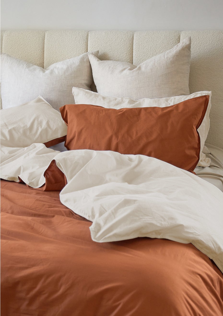 George Collective - Stonewashed Cotton Reversible Duvet Cover Set - California King - Tobacco/ParchmentPREORDER