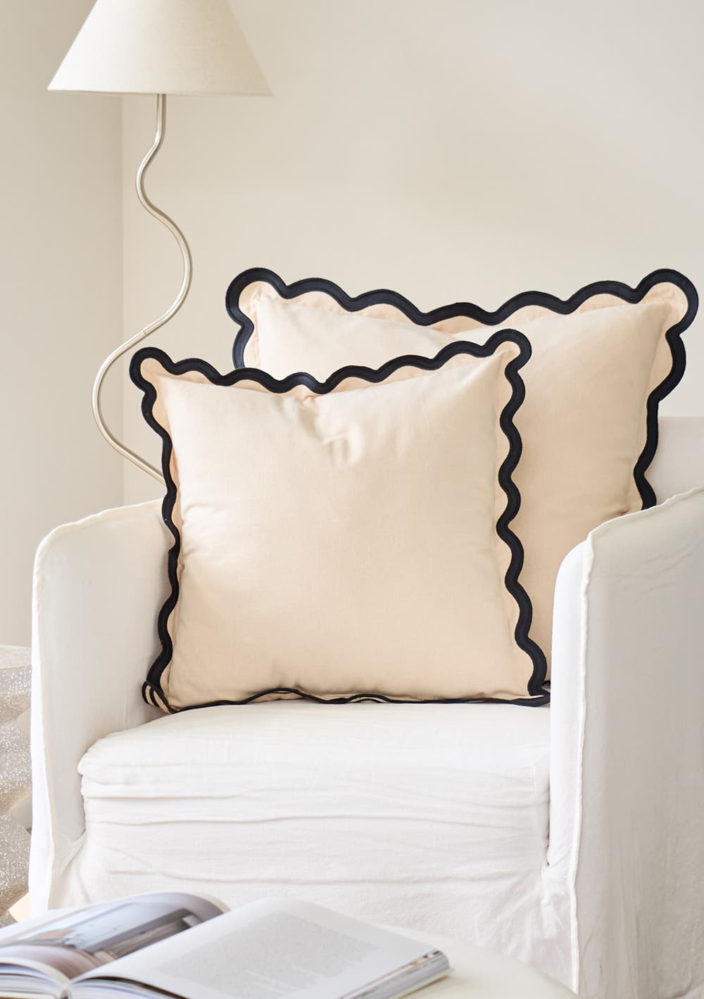 George Collective - 100% Cotton Wavy Edge Filled Cushion - 50cm - Crème/BlackPREORDER
