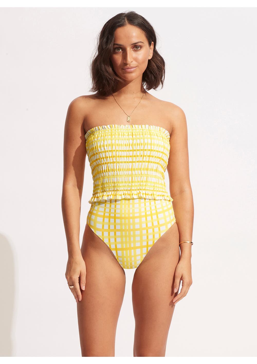 Seafolly - Amalfi Check Bandeau One Piece - Limelight