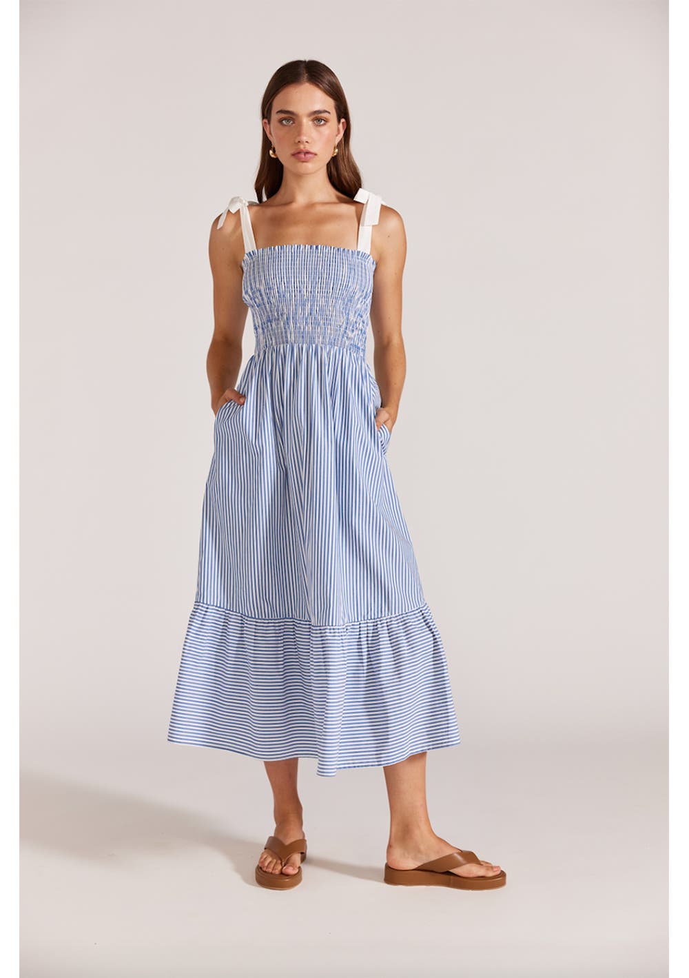 Staple The Label - Lucille Shirred Dress - White/Blue