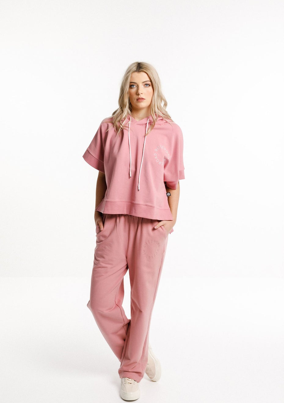 The Baller Pant is a relaxed wide leg mid-rise pant with an elasticated drawstring waistband and pockets for an off-duty look. Elevated with our signature circular Rose Road embroidered on the front leg. Worn best with one of our Classic Crews for an effortless lounge style or with a Roxanne Bomber and a high top sneaker for the ultimate street look.