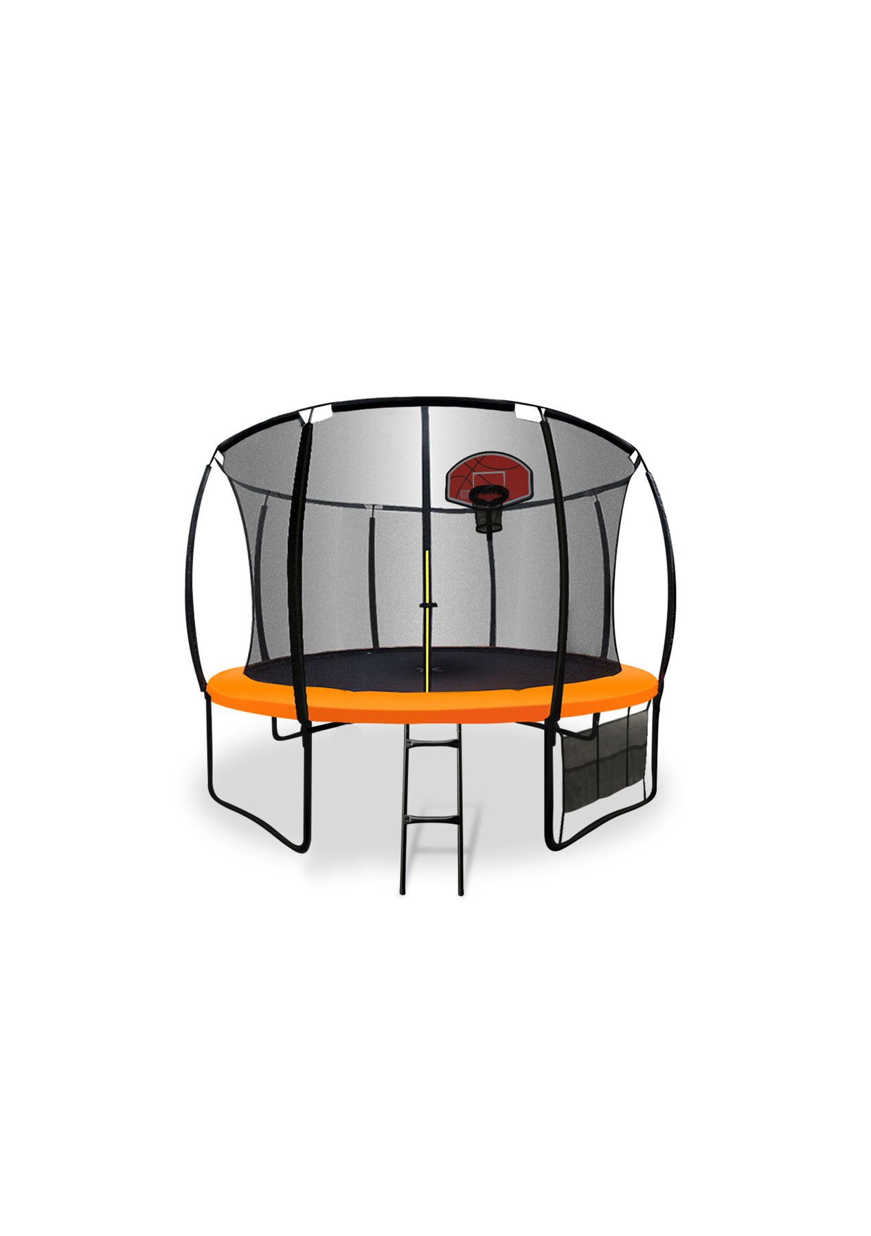 PR2871 (1) Great fun for families and friends. Bounce to your heart’s content with the Trampoline.This outdoor trampoline, with its superior bounce characteristics featuring the springs,can enables safe and durable bouncing suitable for kids and adults.The ladder and shoe bag are also matched,can let the shoes be well accommodated and get on your trampoline with ease.Not least, the trampoline included basketball hoop, basketball and pump really adds an awesome fun factor to the entire ensemble.Jumping on a trampoline in the open air helps make the most of this sport benefits, improving tissues oxygenation and lung capacity.So get this trampoline today!Product Features: Water resistanceEnclosed safety nettingSafe double-lock zip-and-clip entryTriple-rate springsUV Resistant Jumping MatMarine grade hot dip galvanized Steel FrameQuality Thick High Density PVC Rail PaddingHigh density foam wrapped-abs capped Safety PostsLadder & Shoe bag & Basketball Hoop includedSpecificationsColor:Orange and BlackDiameter(cm)427Height(cm) 89Max. User Weight 150KGNumber of Springs: 96W-Leg ( = W ) 4 pcsJumping Mat PP meshFrame Pad PVC + PE Please note:*This item is covered by 12 months return to base warranty. Warranty is not covered if the product has been damaged by general wear and tear, accident, misused or involved in accidental or natural disasters. *If you intend to set it up on the grass or concrete, It is recommended to have an anchoring mechanism/ sand bags applied just in case of windy weather. *Note: Please make sure to put the spring cover on before using the Trampoline. Notes for useMat is not reversibleComply with our assembly instruction and wear suitable shoes and clothesAlways carefully check the trampoline before each useNot suitable for individuals suffering from high blood pressureSet up the trampoline only on a flat and non-slippery groundDo not put cigarettes, pets, sharp objects, or any other foreign objects on the trampolines PackageBasketball HoopCTN A DIMENSION: 171×40×17cmCTN B DIMENSION: 169×42×16cmCTN C DIMENSION: 116×41×15cm Please click here for the assembly instructions