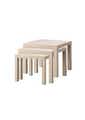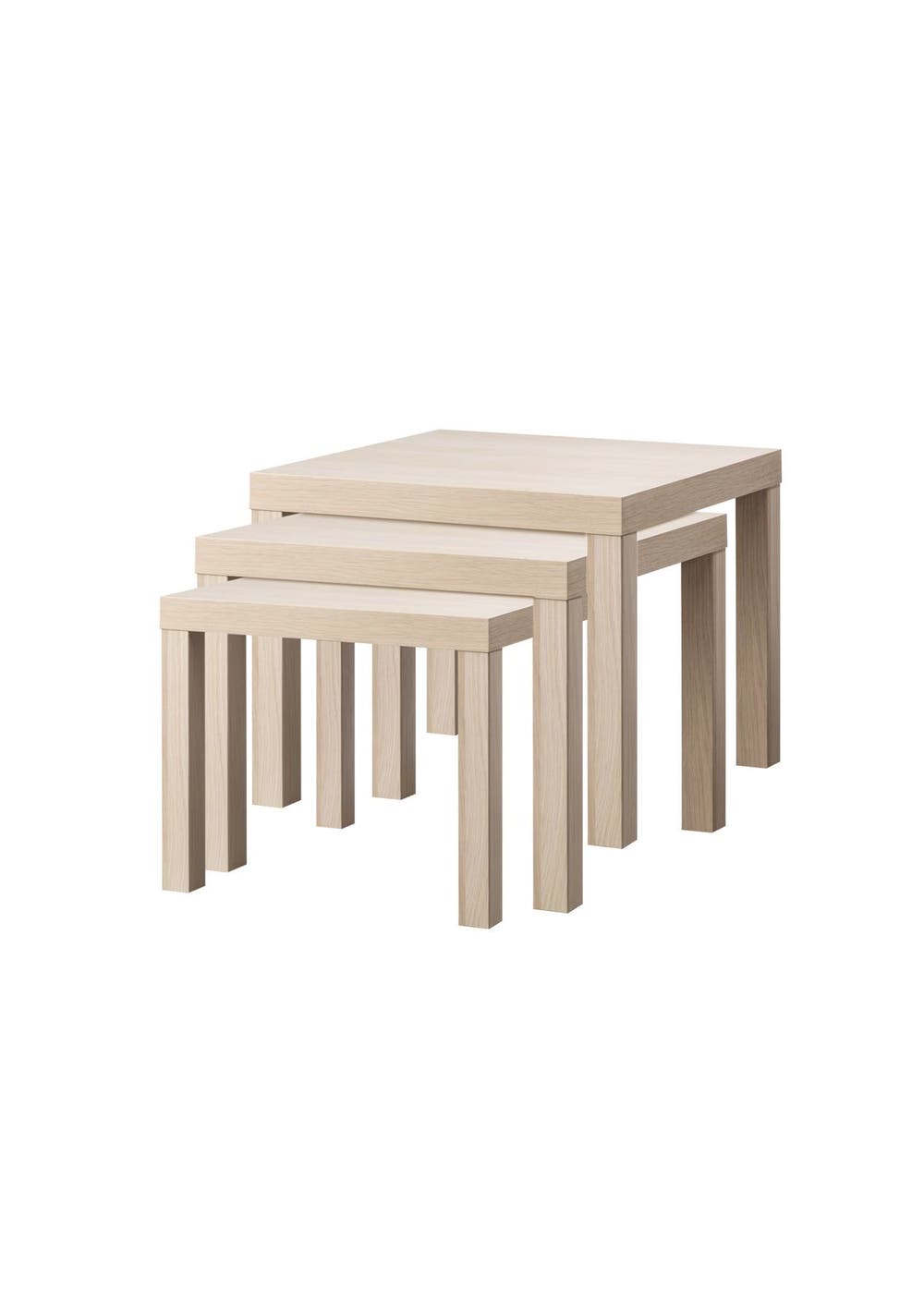 PR65413 Rennick End Nesting Table Set WoodOur Rennick End Nesting Table Set is designed for small Spaces. It can be stacked together to fit tight Spaces, can be used individually for different roles, can be combined together, can be separated and used independently to meet your different needs on a daily basis. You are free to decide how to arrange and where to use them. Easy to clean and install. You also can use it as a nightstand or sofa table, keeping everyday essentials within easy reach. It is suitable for various occasions such as living room, bedroom, balcony, entrance or office.FeatureContemporary designFree configurationThree tablesQuality boardEasy maintainSimple assembleSpecificationMaterial: P2 Board + PVC PanelColor: WoodDimension:40x40x37cm50x50x43.5cm60x60x50 cm