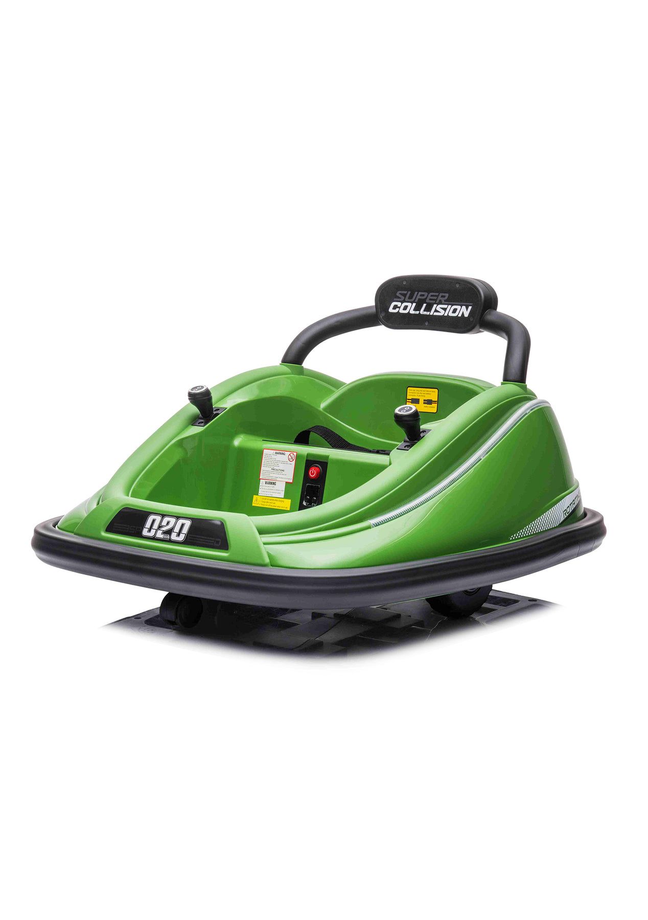 PR8073 - Ride On Car Bumper Car Green Video: https://youtu.be/FRFk1U9QRO0 Get ready to see your child’s face light up with joy as they race, chase, spin and bump into things all around the house. More interestingly, you can watch two of them bump into each other! Rock Wheels bumper car features easy-to-use dual joysticks, fun flashing LED lights with a max speed 2 mph, it’s safe for your kids and they won’t leave marks on your furniture or wall with the soft rubber bumper’s protection! Built with 6V lead acid battery, you will be sure to get plenty of enjoyment after overnight charging! Rock Wheels bumper car requires minimum assembly, and it will be a great gift idea for Christmas, birthday and special occasions!Features:LightMusicOne Button StartFront and rear universal wheelsThe back of the chair360 degreesFull circle of anti-collision stripsSeat beltSpecifications:Material: PP Plastic, MetalLoad Capacity:20kgProduct Size:76x64x45cmBattery:6V4AHx1Motor:1x20W Battery:6V500MA Speed:2-3km/hrCharge Time: 8-12 hrsRun Time: approx. 45 to 60 minsColor:GreenRecommended for ages: 18-72 monthsPackage Content:Bumper car x1Remote control x1Manual x1 pacakage dimension: 76x64x32cm