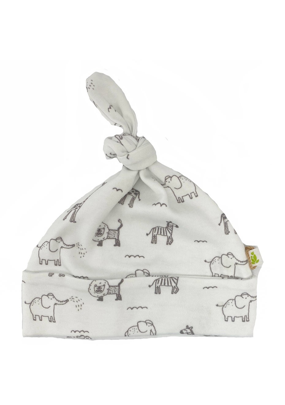 Made from 100% premium cotton. Buttery soft against delicate skin. This Zoo print is a perfect neutral baby gift idea. Ethically and sustainably produced in India. We use only skin friendly, non toxic dyes that are eco friendly. Our fabricis also hypoallergenic. Features: Machine Washable Adjustable size beanie. You can undo the knot, and redo for the size that fits you. Brand: Imababywear Materials: 100% premium interlock cotton.