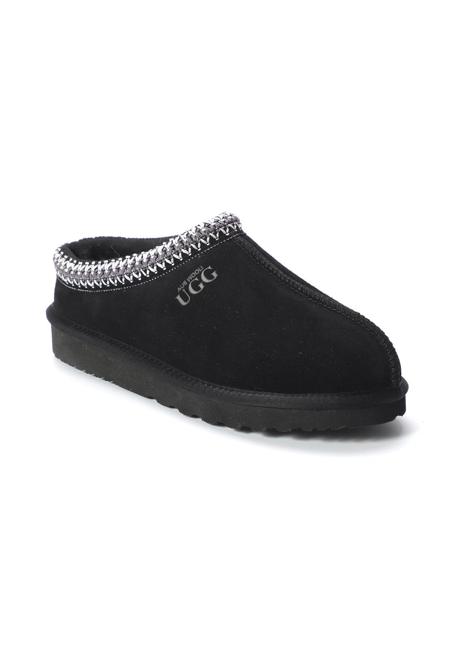 Aus Wooli - Ugg Sheepskin Wool Ankle Braid Croydon Slippers - Black
