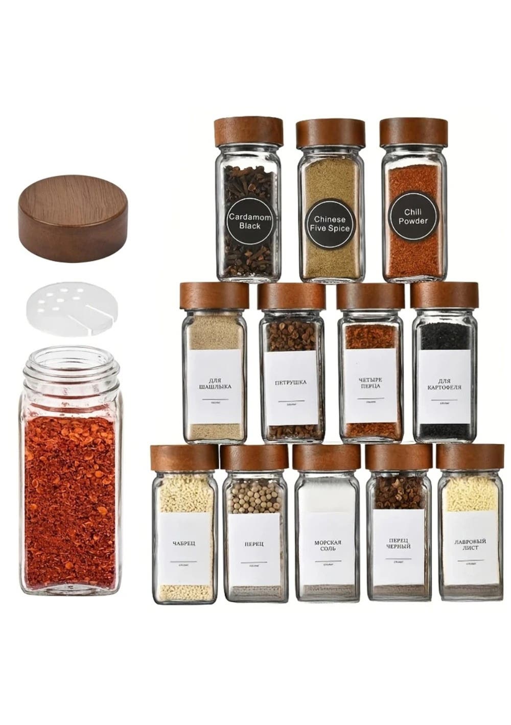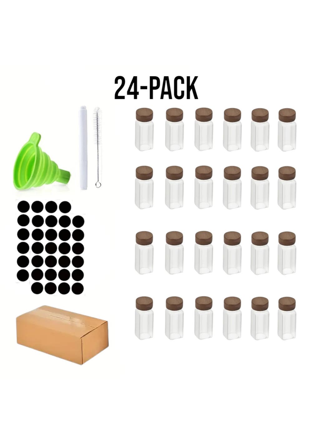 24-Piece Square Glass Spice Jar Set with Wooden Lids