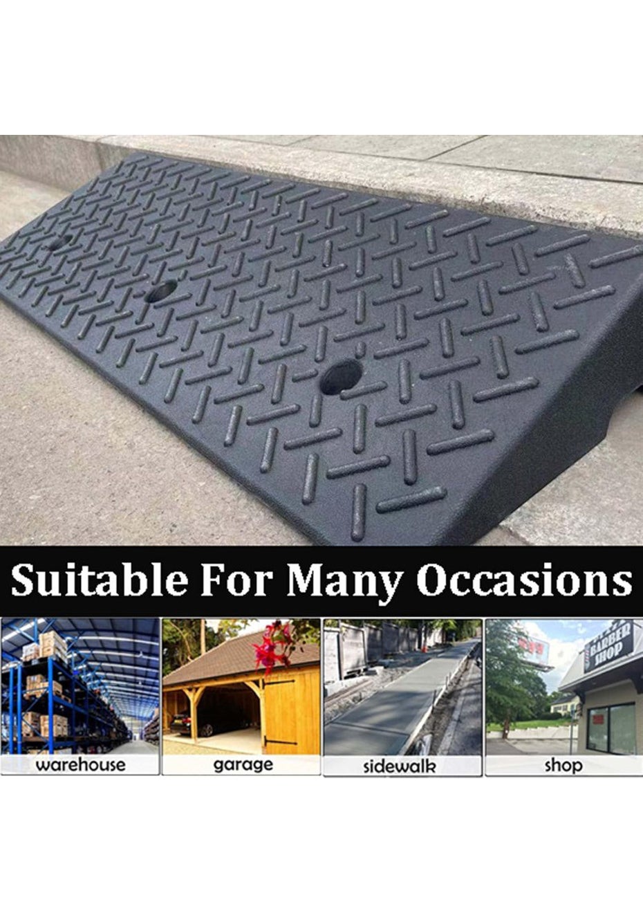 • Anti-Slip Surface Texture: Provides excellent traction for vehicles, wheelchairs, carts, or foot traffic.