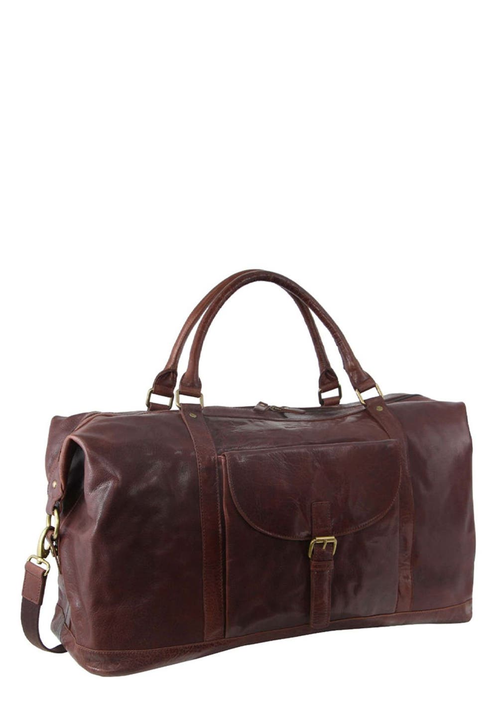 Pierre Cardin Andie Rustic Leather Overnight Duffle Bag Chocolate/Chestnut
