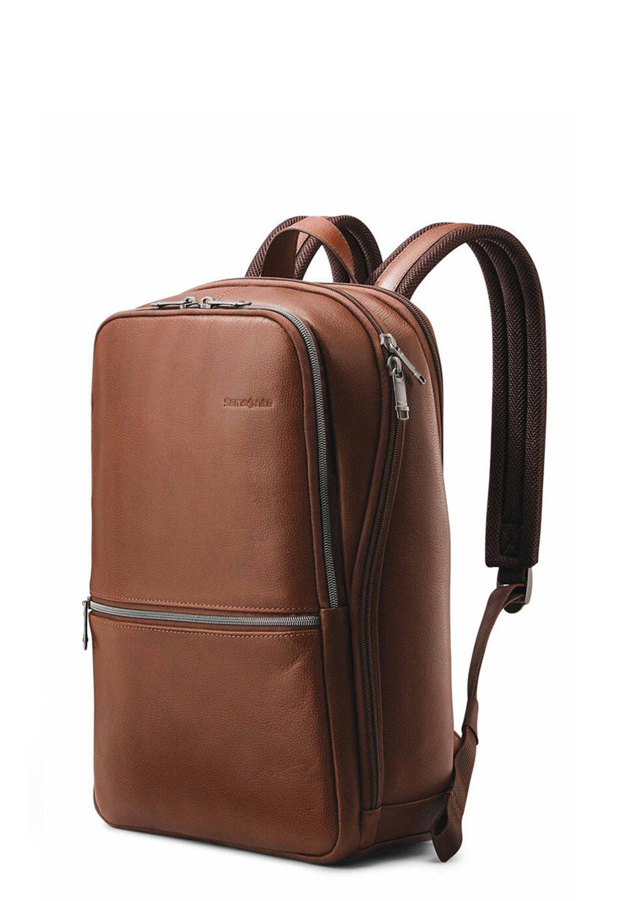 Samsonite Classic Leather Slim Laptop Backpack Cognac
