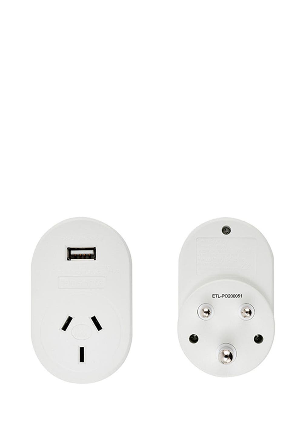 Samsonite NZ & AUS to India Power Adapter with USB White