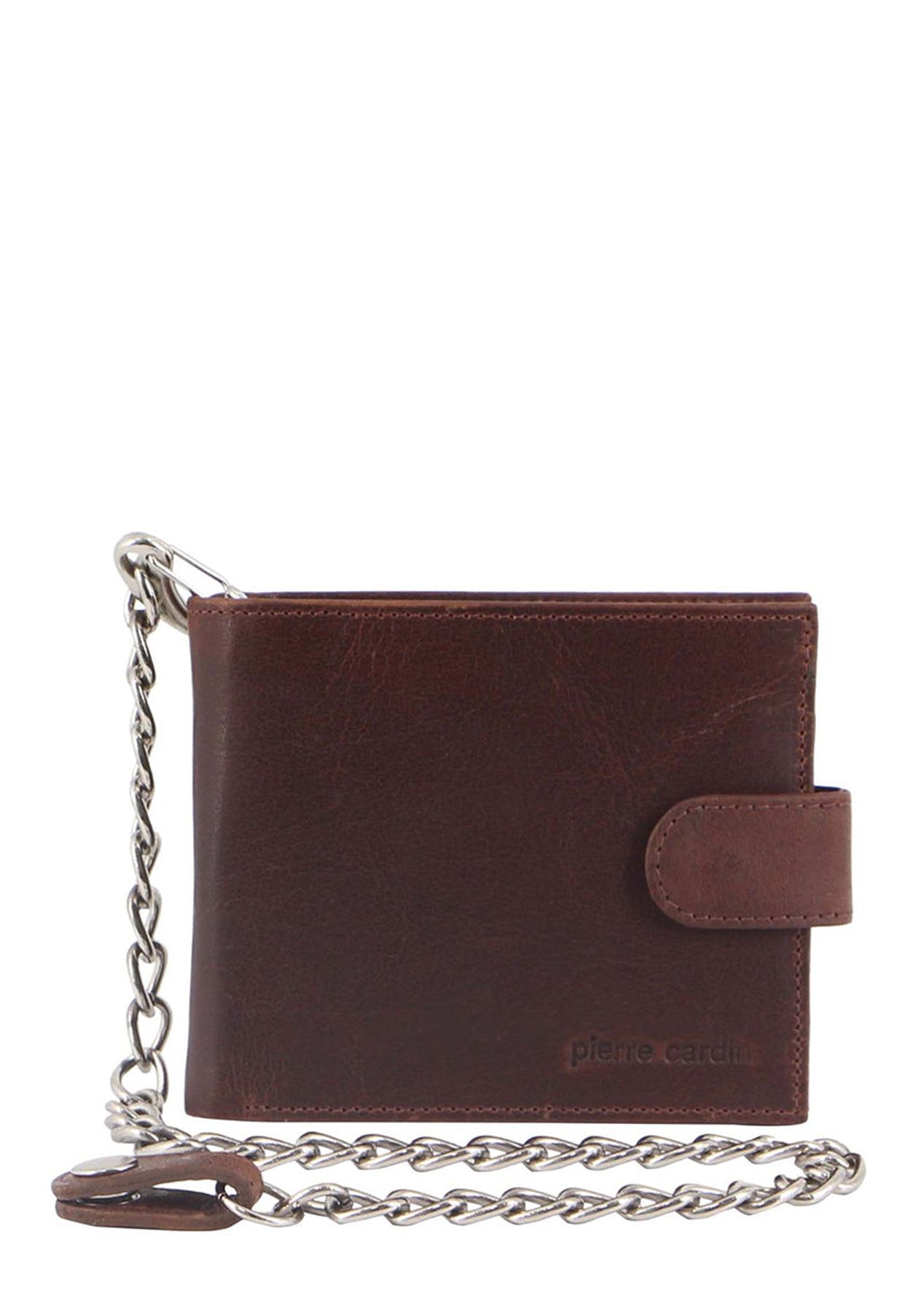 Pierre Cardin Ozzy Men's Rustic Leather Metal Chain Wallet Chestnut
